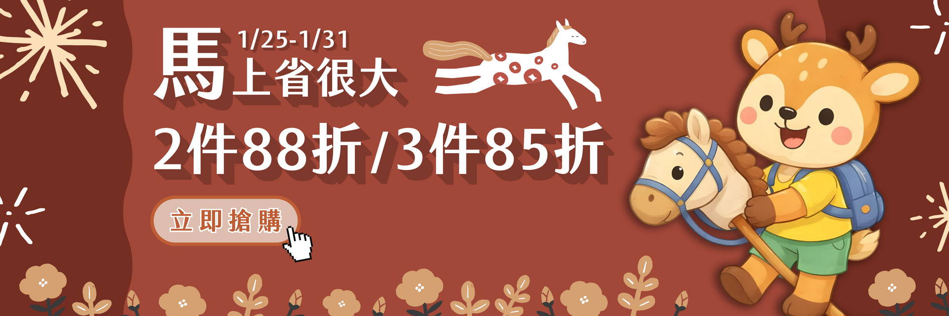 🎉 馬年好運補給站即將啟動!全館任選 2 件 88 折・3 件 85 折